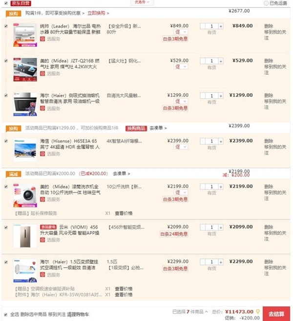 而电视的差价也非常大,几百块到几万块的都有,但有个比较好的地方是目前即便是65英寸这种较大尺寸的电视,电商售价也在2500-3000元左右就可以买到,可以说是相当便宜。 而这样的电视也不要过分的追求什么画质了,但日常追追剧看看综艺还是挺好的。毕竟一个小手机都要五六千的年代,2500买这么大的一个屏幕,它不香么? 空调: 一般低预算买家电都是小户型偏多,空调逃不掉的2000+预算,一般情况下如果只准备安装一台的情况下,那还是优先安装在卧室比较好一些,毕竟这是一个影响睡眠质量的事情。